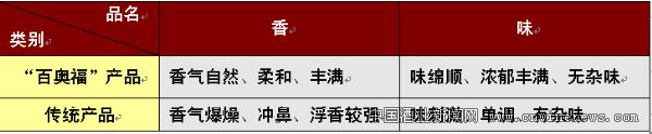 2.“百奥福”与传统产品在香与味上的鉴别与对比(见表2)