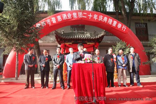 10月23日,农历9月9日重阳节,陕北榆林,美酒飘香。当天上午,榆林市普惠酒业集团迎来了建厂二十周年庆典。陕西省、榆林市、榆阳区各级政府领导,全国知名酿酒专家,十多家全国知名媒体及老榆林酒经销商代表三百余人参加。普惠酒业集团建厂20周年庆典活动丰富多彩,而普惠酒业创领推出的由公证处公证的专门性服务——老榆林“酒银行”、隆重推出的中国黄土洞藏第一酒——国藏一号、充分展现陕北风貌人情和老榆林系列酒的发展历程的“老榆林酒文化展览馆”以及具有浓郁产品和历史文化特色的普惠“黄土洞藏”酒拍卖等活动,得到了与会者的高度赞誉和积极响应,并在行业内也产生了良好的口碑效应。