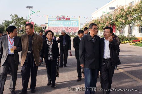 ④相关领导、酿酒专家和媒体记者等参观了花冠集团的厂容厂貌。