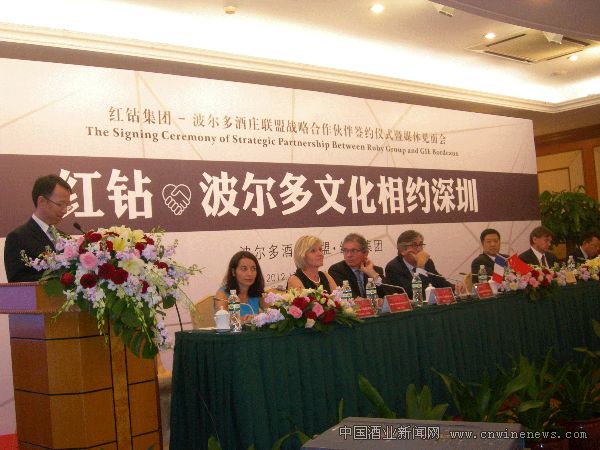 日前,深圳红钻集团与法国波尔多酒庄联盟战略合作协议在深圳举行。法国波尔多副市长兼旅游局局长斯蒂芬•迪洛斯率波尔多葡萄酒文化代表团造访深圳,出席红钻•波尔多葡萄酒文化系列交流活动。