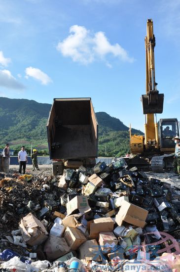 2012年11月23日下午,三亚市商务局集中销毁假冒伪劣酒类商品活动,据统计,本次查获违规酒类商品3180瓶,涉及长城、张裕等白酒、红酒、葡萄酒等名酒10余种。