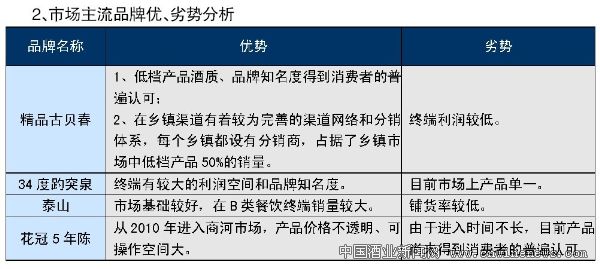 低档产品市场缺乏领导品牌,产品杂而乱,消费者易受终端推荐影响;从另一个角度来说,低档白酒市场外来品牌介入运作的成功概率较高。