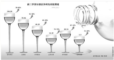 此外,茅台以10.04元的每股收益摘得A股“盈利王”的桂冠,五粮液三季度净利同比增六成。