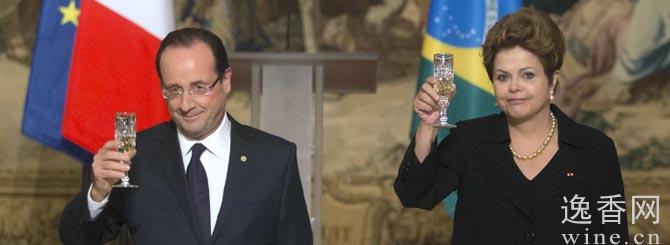 法国总统Francois-Hollande--Dilma(左)与巴西总统Dilma Rousseff共饮香槟