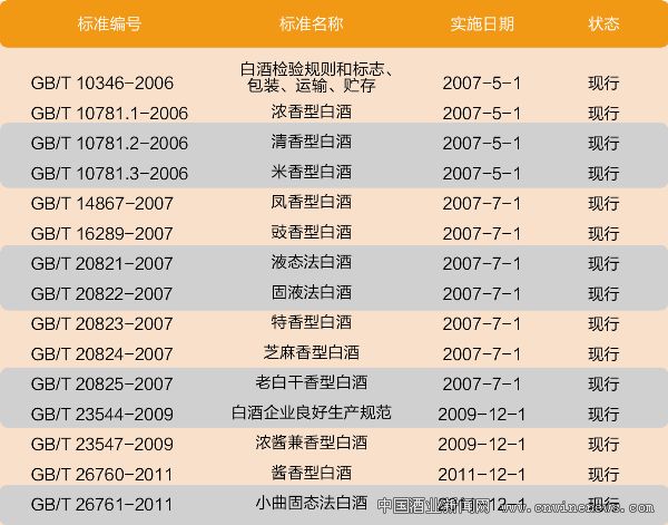 白酒行业现行部分国家标准