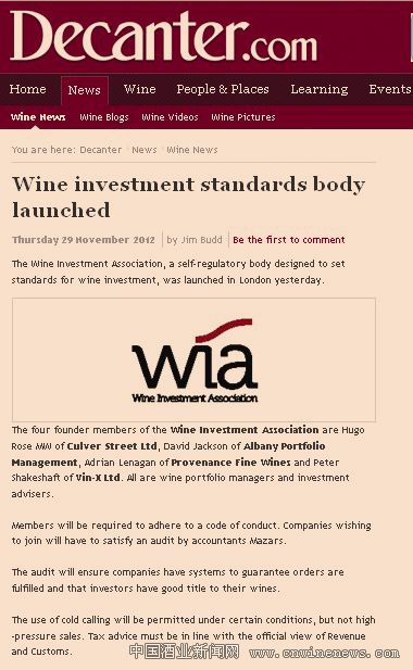 英国葡萄酒投资协会(The Wine Investment Association)近日宣告成立,该协会致力于为葡萄酒投资设定相关标准。