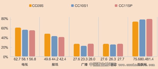 数据来源:中国市场与媒体研究CMMS2009S~2011S(2011S反映的是46个城市概况,2010S反映的是35个城市概况,2009S 反映的是30个城市概况)。