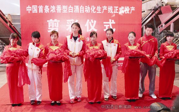 伦敦奥运冠军为今世缘中国首条浓香型白酒自动化生产线正式投产剪彩。