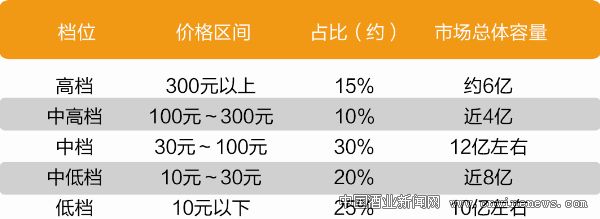 由于天津居民整体收入水平相对要低于其他直辖市及其它大城市,中低价位白酒占整体销量的70%以上(见表2)。