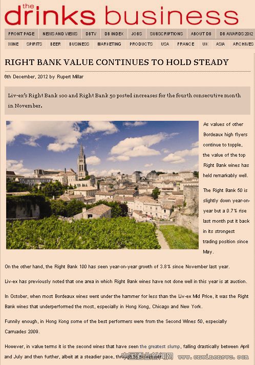 到11月份,伦敦国际葡萄酒交易所(Liv-ex)右岸100指数(Right Bank 100)和右岸50指数(Right Bank 50)已经保持连续4个月增长。