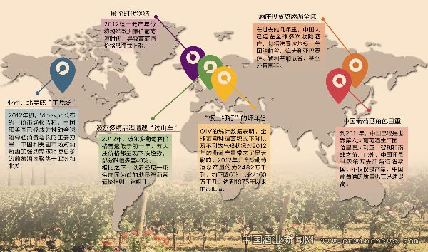 2012年初,Vinexpo公布的一份市场报告为葡萄酒市场带来了乐观的预期。报告称,中国和美国已经成为推动全球葡萄酒消费增长的主要力量,中国和美国市场对葡萄酒的强劲需求将使更多的葡萄酒商聚焦于亚洲和北美。