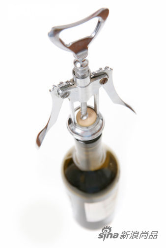 4 开瓶时木塞若有碎屑甚至断裂掉到酒瓶内,需要用细孔小筛网将酒过滤再喝。如果是大块掉落,则用特质的三角小勾夹可把断木塞取出。没有小夹的话,就让断木塞留在瓶中,它在短时间内不会影响酒质;