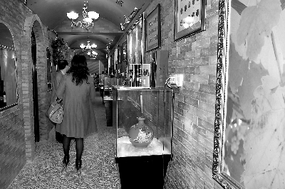 步入酒窖,长廊两边是十余个藏酒室,藏酒室内各式葡萄酒琳琅满目。“除了我们自己酒庄出产的十年红,还有酒国名品,像拉菲这种,价格从几万元一瓶到几十元一瓶的都有”。