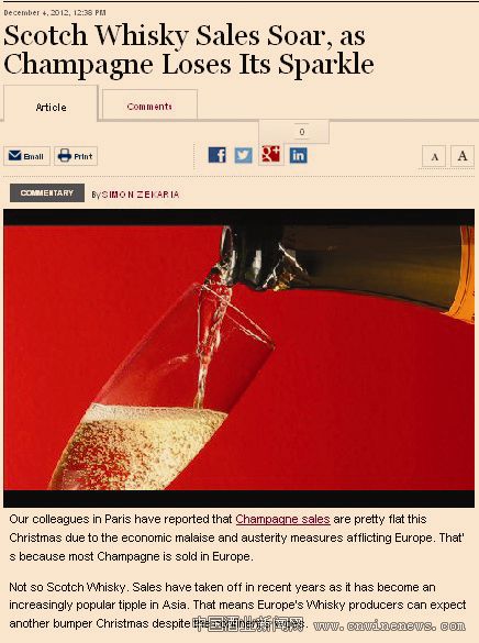 由于多数香槟在欧洲销售,而欧洲经济的严峻形势对刚刚过去的圣诞旺季香槟消费产生了显著影响。但相比之下,苏格兰威士忌的销售却保持了强劲增长。
