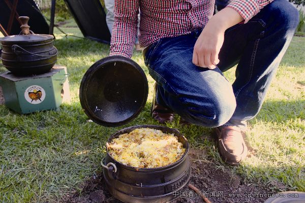 此外,还有各种各样的山珍野味让人大快朵颐,比如鳄鱼肉、野猪肉、斑马肉等。记者尝到一种烤肉极其细嫩美味,据正在烤制的厨师说,这是一种名叫“Springbok ”的野生羊类,擅长跑跳,因为繁殖太快,需要大量宰杀才不致泛滥,正好可以让当地人大饱口福。而在露天场地用埋到土中的铁锅炖制的肉和菜,口感鲜嫩无比,香气袭人。蓝天白云下,一边眺望一望无际的葡萄园,一边品尝美味的葡萄酒和当地的野味,让眼睛和胃口同时过足了瘾。