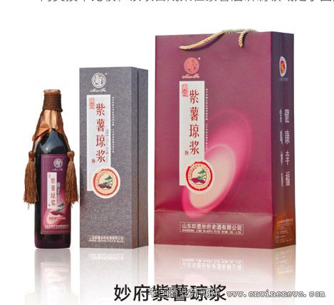 文章来源华夏酒报 据中国酿酒大师、妙府老酒公司总经理、总工程师于秦峰介绍,妙府紫薯琼浆以鲜紫薯为原料,配以妙府特制的小麦陈曲,营养丰富,香气浓郁,口感醇厚,酒体晶莹。妙府紫薯酒两大系列产品紫薯琼浆和金薯玉液已批量投向市场,由于产品的优质、安全、天然、健康、营养、爽口等特性,深受市场尤其中高端市场消费者的盛赞。