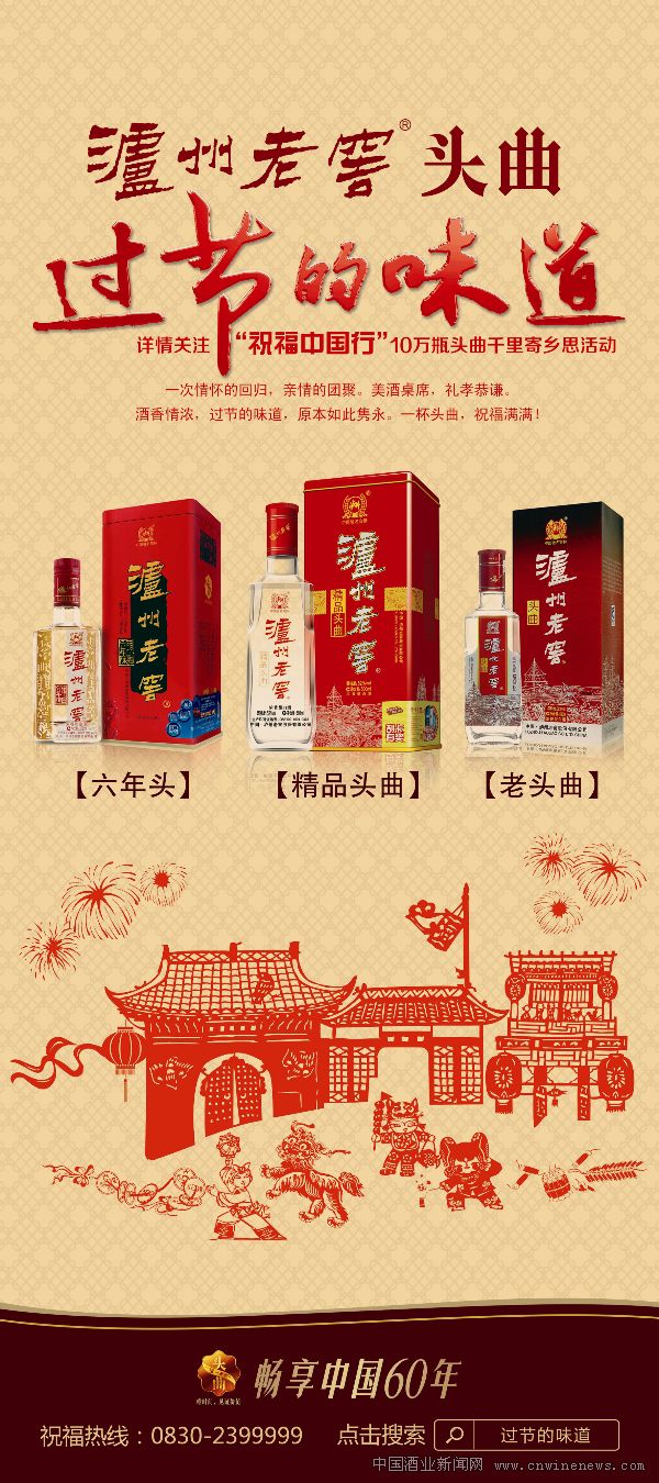 “‘一路顺,六六顺’!顺不顺,看运气,新年一个‘顺’字吉利寄语,你还别说,一年中各方面硬是要顺利些!”曾德华通过仔细观察发现:不少乡亲冲着泸州老窖“六年陈头曲”一个“顺”字,都把泸州老窖六年陈头曲 “一路顺,六六顺”作为新年祝愿抱回了家。就这样,2009年春节,“团圆酒”“ 迎春酒”“ 贺岁酒”“ 拜年酒”“ 庆功酒”等等,宾朋间相互祝福,甚至村民间“拜年”赠送亲朋,也是手提一件泸州老窖六年陈头曲作为新年贺礼。泸州老窖六年陈头曲一个“顺”字,走进了大家的心里!