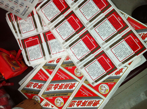 一开始是好奇,杨某给那人打了一个电话,得知对方出售各种名酒成套的标签、瓶盖、包装盒、防伪标识、宣传手册等。对方言简意赅地说:“除了酒精,其他所有的我都能提供,保证和真的一模一样!”杨某一算,制作一瓶假名酒,成本价大约只需十几元。