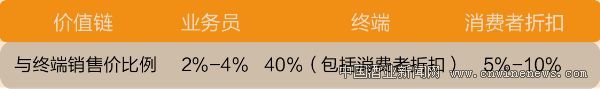 如此设置价值链的最大优势在于,能够充分保持产品在各个环节的竞争优势,满足渠道不同环节人员的利益要求,同时又不会超出主流竞争价格带。