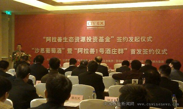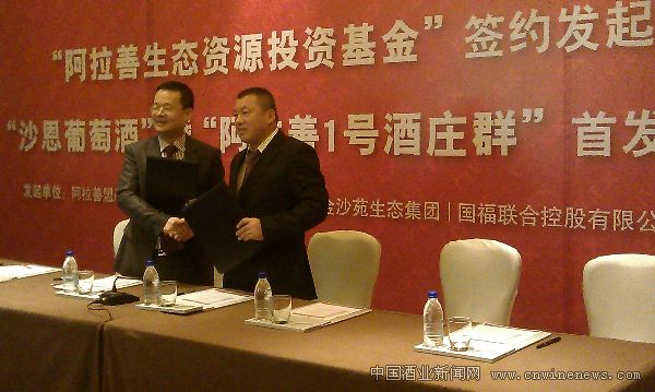 1月12日,由中国国际酒饮电子交易中心、内蒙古阿拉善盟、金沙生态集团、国福联合控股有限公司等共同发起的“阿拉善生态资源投资基金”签约仪式暨“沙恩葡萄酒、阿拉善一号酒庄群”首发签约仪式在上海举行。