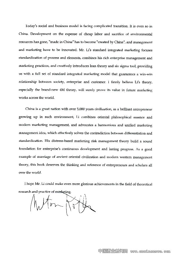 科特勒先生对《标准化整合营销》的推荐稿