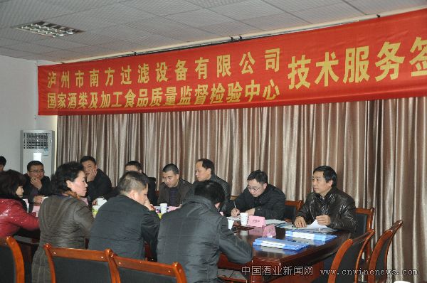 据了解,泸州市南方过滤设备有限公司是一家专门从事白酒过滤设备开发、设计、生产和销售为一体的科技型、环保型企业,拥有优秀的经营管理和生产技术人才,并配置先进的生产设备、精密的检测仪器,具有可靠的产品质量保证和一站式的全程服务体系。随着更加适应白酒企业的技术改造,该公司拟充分利用国家酒类及加工食品质量监督检验中心的技术、人才、设备等优势,尤其是技术创新优势,从而更好地提高企业的科技含量,不断增强企业的科技创新和新产品开发能力,达成了战略性合作意向。