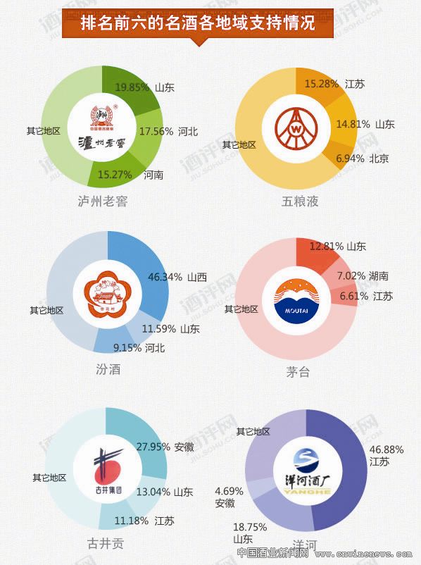 山东人最好酒。在排名前五的名酒中,山东酒友均进入了前三。但是山东网友对本地品牌却并不认可,在所有参与调查的山东网友中,仅有7.02%的网友过年选择了山东当地品牌。山东人最喜欢的品牌是泸州老窖、茅台和五粮液。