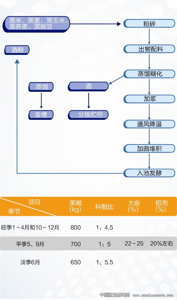 2.1生产工艺:采用小石窖做窖池,原生态黑米、黑麦、黑荞麦、黑玉米、黑豌豆做原料,采用传统古法酿造工艺精心酿制。