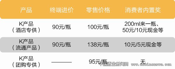 基于价盘稳定的考虑,合理设置价格体系。拓展婚宴市场一般都采用不设消费者内置奖的团购专供产品,为了不影响产品正常的渠道销售,既能使专供产品具有竞争力,又能保持市场价盘稳定,一般团购产品的售价定位在终端进价与零售价格之间。K产品在不同渠道的终端与零售价格(见表1)。