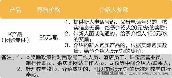 基于产品销售考虑,合理制定介绍人奖励。对介绍新人的中间人,给予一定的介绍人奖励,扩大直销覆盖面(见表3)。