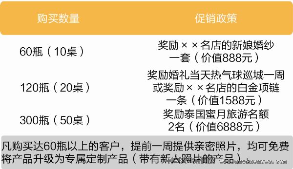 通过利润分割的方式使酒水销售成为婚庆场所的利润来源之一,让婚庆场所成为酒水销售终端,形成持续销售。