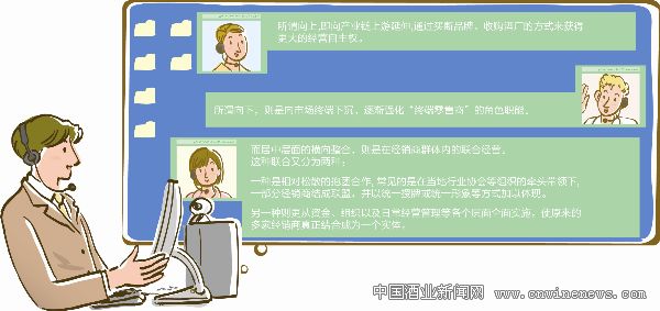 就后者而言,近年来在一些地方出现的酒类经销商联合体或酒类合作社就颇为引人注目。在一些酒类消费的成熟市场,几家或多家经销商跨乡、跨县甚至跨市联合起来,结束了从前各自为阵的局面,形成统一的销售网络……