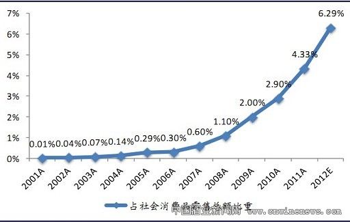随着互联网的普及,近些年来我国网民和网购用户数增长迅速,截至2012年12月底,我国网民规模达到5.64亿,全年共计新增网民5090万人,手机网民数量达到4.2亿,年增长率高达18%。根据艾瑞咨询发布的数据, 2012年全年全国线上零售交易规模约为13040亿,同比增长 66.2%,继续保持高速增长,线上零售占社零比重再次创出新高,达到 6.3%。