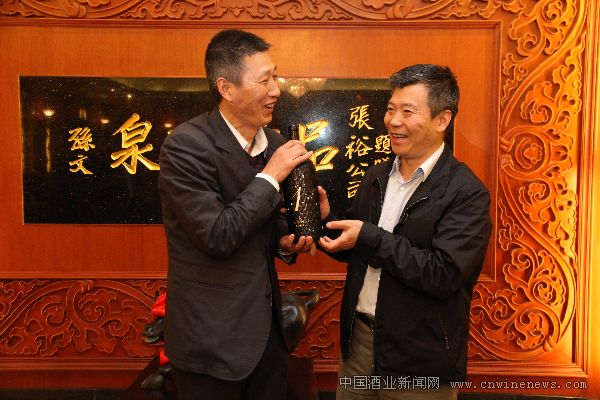 张裕葡萄酿酒股份有限公司总经理周洪江代表张裕公司向泸州老窖集团赠送纪念品