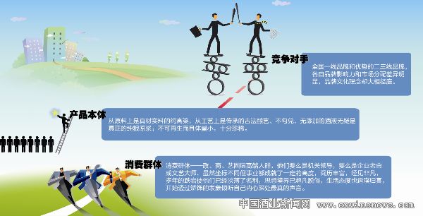 纵观我国白酒业的产品命名,不难发现大家都已经死守着单纯的人名、地名、年份、原料、工艺、诗词古迹、动植物以及世俗的情、景和字眼“画地为牢”了。在行业品牌中,除茅台、五粮液及个别二线的文化背景极其强势的品牌打开全国核心市场外,其它多数二线及以下的品牌产品销售都局限于产地及周边区域,很难实现跨区域销售,更不要奢望去突破国际市场了。其中很大的障碍就是,产品命名的单薄性和浅显性,无法体现产品个性特质,无法带动整体品牌文化和精神理念去影响市场消费。