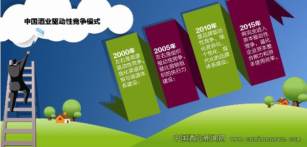 文章来源华夏酒报争阶段,分别是:2000年左右是渠道驱动性竞争,强化渠道政策与渠道体系建设;2005年左右是组织驱动性竞争,强化营销组织的执行力建设;2010年是品牌驱动性竞争,强化差异化、个性化、现代化的品牌体系建设;2015年将完全进入资本驱动性竞争,强化企业资本整合能力和资本使用效率。