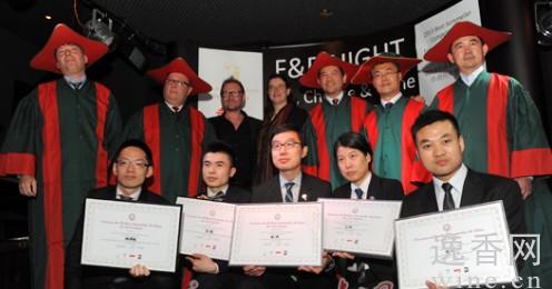 大赛冠军张旭(前排中)、刘玲(前排右二)和廖唯一(前排右一)与中法两国裁判合影留念