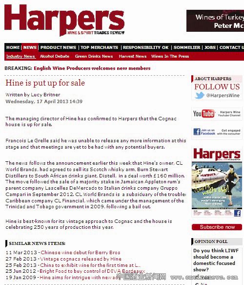 法国御鹿(Hine)干邑酒庄总经理Francois Le Grell文章来源华夏酒报e证实,这座距今250年历史的酒庄已挂牌待售,但尚未约见任何潜在买家。