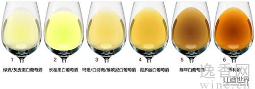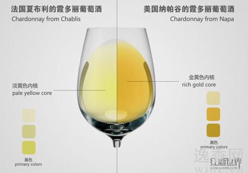 和红葡萄酒一样,观察白葡萄酒的颜色,我们可以获知酒龄、葡萄品种以及产地等信息。但是,白葡萄酒的自身特点也决定了其与红葡萄酒的不同。一般来说,大多数白葡萄酒都是不需要经过橡木桶陈酿的,但为了获得更加丰腴饱满的酒体,有些白葡萄酒也可以进行橡木桶陈酿,如霞多丽葡萄酒(Chardonnay)。