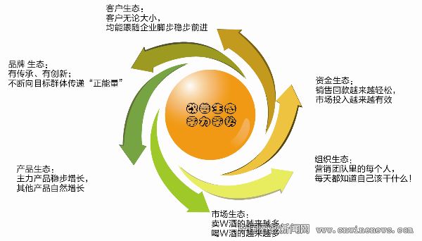 经销商的高水位库存压力和终端网络建设、维护的停滞,是W酒厂经销商的普遍形态;奖卡无人兑付,陈列展示、达量奖励兑付不及时导致终端销售积极性受挫,是W酒厂的终端形态;销售网点萎缩、市场见货率极低、产品基本每月消费者自点,是W酒厂现阶段的市场形态;单纯的销量考核,回款少导致工资低,营销团队士气低落,是W酒厂目前的组织生态。在W酒厂整个营销环节中,经销商、终端、区域市场、营销组织等生态的恶化,使得W酒厂的市场运转裹足不前。区域市场基础建设的缺乏和消费者品牌培育的缺失,导致产品动销缓慢,是W酒厂营销生态恶化的根源。企业转型与变革势在必行。