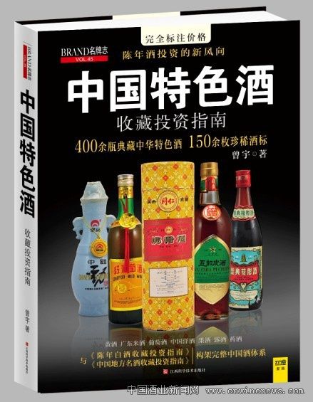 文章来源华夏酒报 近日,《华夏酒报》记者从北京紫图图书公司获悉,中国首家专业从事陈年白酒文化研究机构——江西省陈年白酒文化研究品鉴中心主任曾宇新著《中国特色酒收藏投资指南》已经出版发行。这是中国第一本图文并茂介绍中华特色酒文化的收藏投资指南。