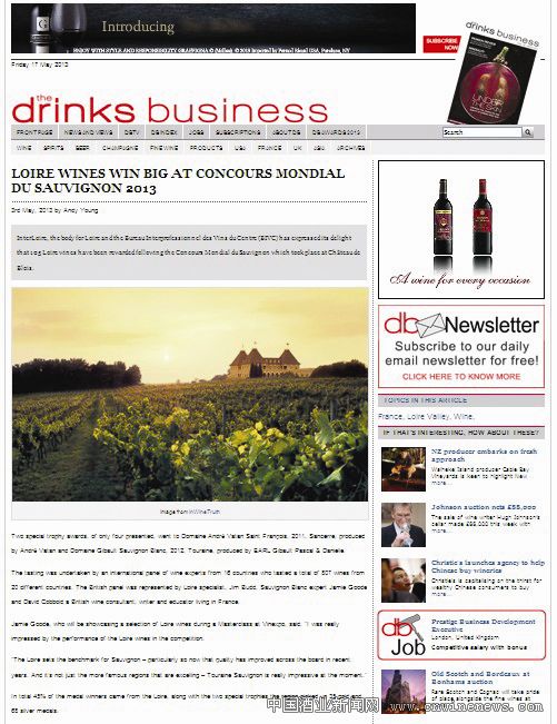 2013国际长相思大赛(Concours Mondial du Sauvignon)在卢瓦尔河谷的布卢瓦酒庄(Chateau de Blois)举行。共有105款卢瓦尔河谷葡萄酒在本次大赛中获奖。