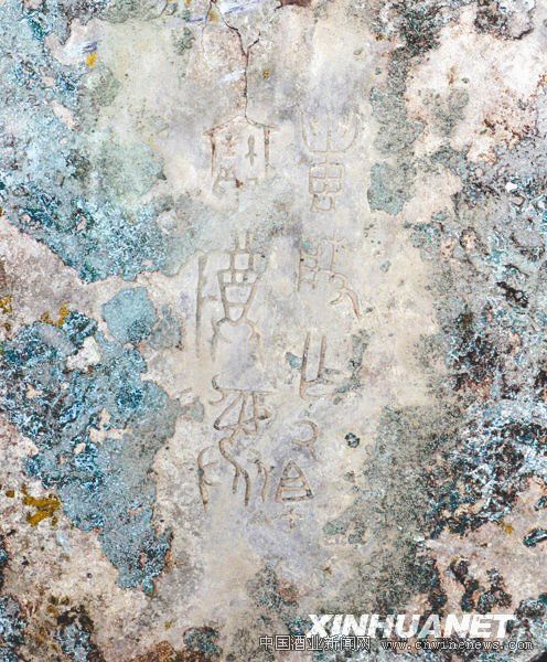 考古人员在“陈庄遗址”挖掘出土的铜簋部铭文
