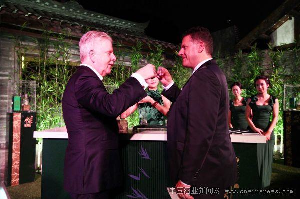 《时代》周刊、《财富》杂志全球发行总监Andy Bush(右)与友人品鉴“水井坊 菁翠”