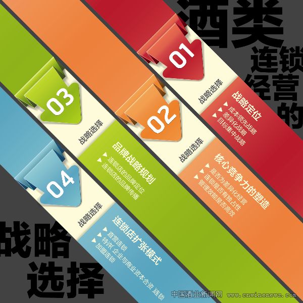 笔者结合连锁经营的战略定位、核心竞争力的塑造、品牌战略规划及连锁店扩张模式四个层面,做出酒类连锁店经营战略分析。