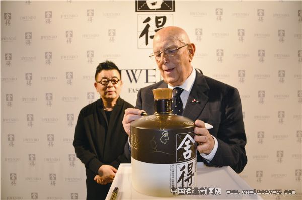 意大利时尚教父、时装工会主席波赛利在舍得酒上签名留念。