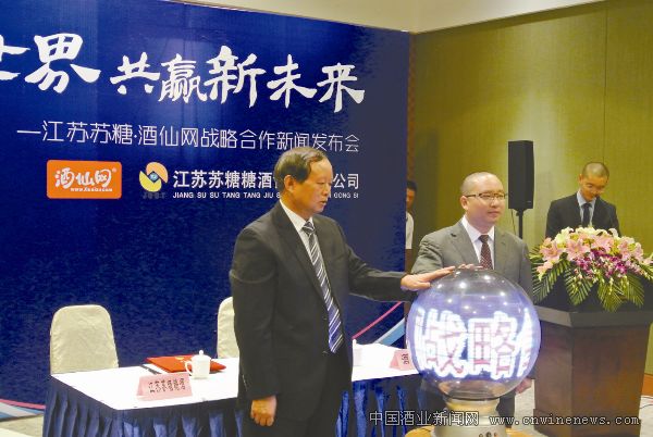 6月19日,江苏苏糖糖酒食品有限公司与酒仙网在南京召开战略合作新闻发布会,江苏苏糖糖酒食品有限公司总经理陈国锁与酒仙网董事长郝鸿峰的手紧紧握在一起。此次达成战略合作,标志着江苏苏糖所经销的数百款产品将可通过酒仙网各大平台开展销售,同时,酒仙网也丰富了自身的产品线,并可通过江苏苏糖在江苏省内的渠道优势展开线下的各项合作,实现双方共赢。