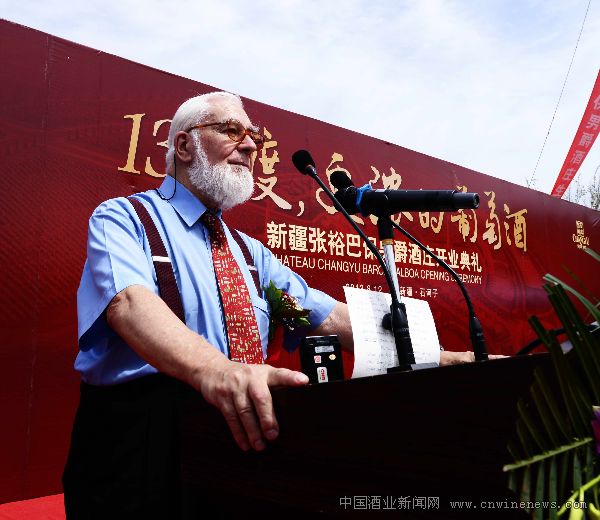 张裕新疆巴保男爵酒庄名誉庄主、首席酿酒师约翰.萨尔维伯爵在酒庄开业仪式