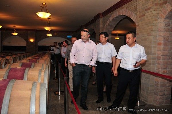 7月3日,法国酿酒师联盟总裁达罗斯、法国酿酒师联盟主席白永、蓬莱市政府副市长吴明光以及其他中国国际葡萄酒烈酒品评赛的专家评委参观游览了国宾酒庄。