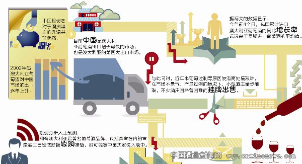 中国投资者对于澳洲酒庄的升温并非偶然,自2002年来,澳大利亚葡萄酒对中国市场的出口逐年上升,目前中国是澳大利亚葡萄酒出口增长最快的市场,也是澳大利亚的第四大出口市场。而就每升单价高于7.5澳元的澳大利亚中高端葡萄酒市场来说,中国则排名第一。据统计,2012年澳大利亚的葡萄酒出口公司增加了10%,达到1400家,其中2/3的目标直指中国消费者。另据海关的数据显示,今年前4个月,我国累计进口澳大利亚葡萄酒的同比增长率远远高于同期进口葡萄酒的平均值。这一系列的增长表现反映了澳大利亚葡萄酒(尤其是中高档葡萄酒)越来越受到中国消费者的青睐。澳大利亚葡萄酒品质优良,口感柔顺圆润,符合中国市场消费者对于葡萄酒的需求,而随着波尔多酒市场走弱,国内对于澳洲葡萄酒的投资热浪将逐步兴起。